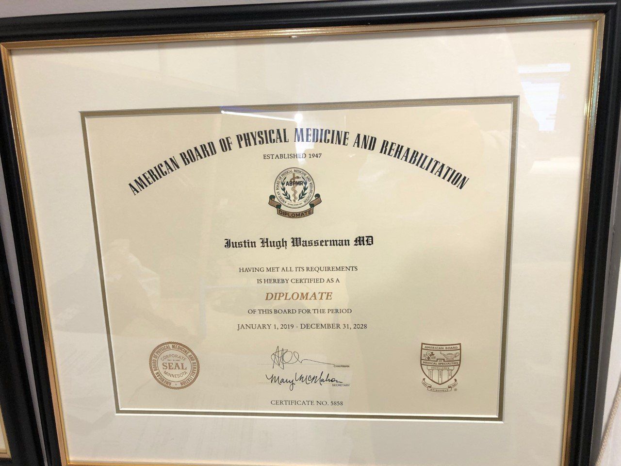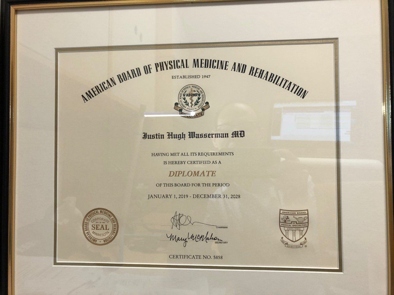 Dr. Wasserman of The Pain Treatment Center of Greater Washington is board certified in Physical Medicine and Rehabilitation, board certified in Pain Medicine, certified by The American Board of Pain Medicine, and is also certified by the U.S. DEA in buprenorphine office-based medical management of opioid addiction.